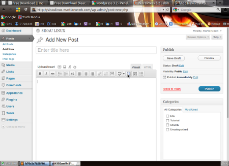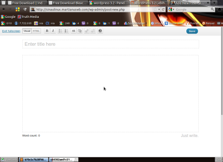 Penambahan yang unik adalah adanya fungsi fullscreen mode di Add new post. Yaitu di tempat kita biasanya menuliskan postingan/artikel.