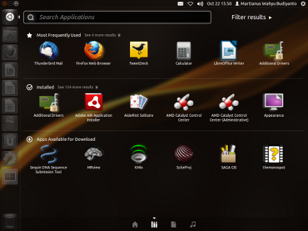 Berikutnya adalah saya rasa Ubuntu 11.10 ini lebih difokuskan kepada para pengguna baru dengan diutamakannya Graphic User Interface (GUI). Feature-feature yang dikenal oleh para pengguna Ubuntu veteran tetap ada dan ditingkatkan, hanya saja diletakkan “di belakang layar”.