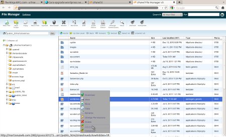 Langkah 9. Setelah proses upload selesai, file wordpress.zip tadi tinggal diekstrak.