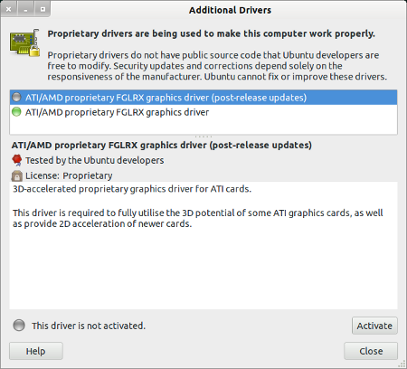 Kemudian tinggal aktifkan driver yang terdeteksi oleh Ubuntu.