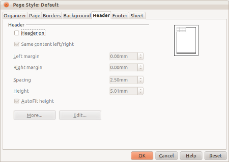 Kemudian klik pada tab Header, dan hilangkan tanda centang pada Header on