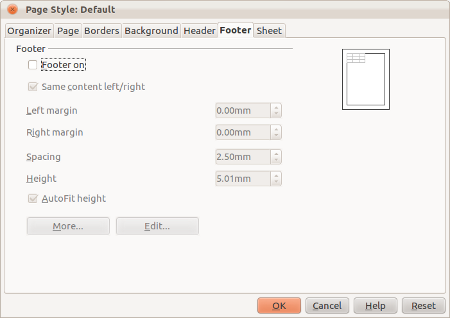 Kemudian klik pada tab Footer, dan hilangkan centang pada Footer on, kemudian klik OK.