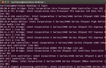 Perintah ini berfungsi menampilkan informasi tentang PCI bus dan hardware yang terkoneksi dengannya.