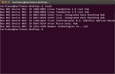 Perintah ini akan menunjukkan informasi berkenaan dengan USB bus dan hardware yang terkoneksi dengannya.