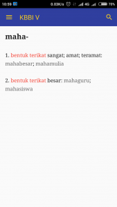 Fitur lainnya dari aplikasi ini adalah adanya pembagian lema dalam bidang-bidang ilmu khusus. Misalnya di bidang komputer, kita punya lema “salin tempel” sebagai padanan copy paste.